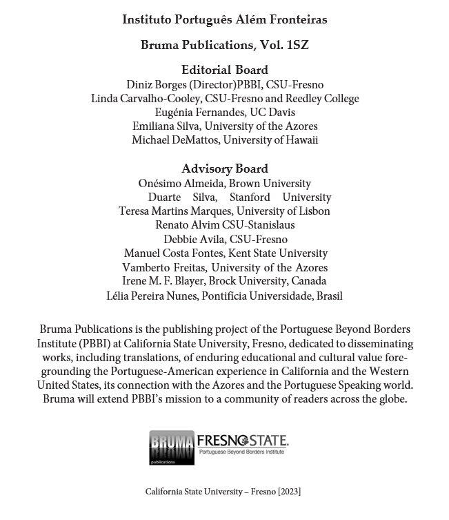 Bruma Publications from the Press at California State University Fresno has published four books with Letras Lavadas in Ponta Delgada, Açores. These four books are part of an ongoing publication series that Bruma Publications from the Portuguese beyond Borders Institute is committed to publishing, including an upcoming translation of a book focusing on the History of the Azores and translation of contemporary Portuguese and lusophone poets and anthologies. The books are available in Portugal through the online service of Letras Lavadas and in many bookstores in the Azores for those who visit the islands.