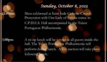 The Festa de Nossa Senhora de Fátima in Easton-Fresno is happening this weekend. The fest was founded in 1983, so it’s commemorating the 40th anniversary. Congratulations to all for the anniversary, and the Portuguese-American community is, of course, grateful to all who, throughout this state, maintain these traditions alive for future generations. PBBI, Fresno State, is here to register all of the stories around the Portuguese-American experiences, including the Festas.