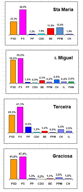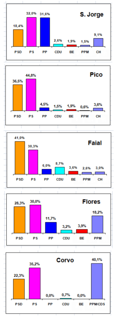 The graphs below indicate the results from 2020 for each island, and the last graph shows the alarming numbers of Azoreans who stayed home in the 2020 election.