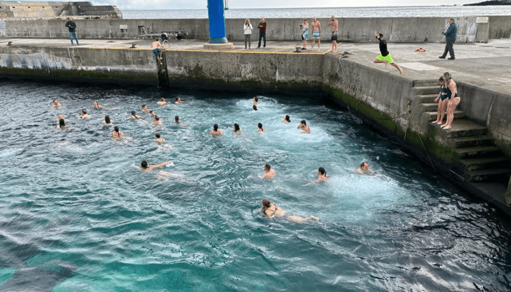 Swimmers of all ages again fulfilled the tradition of taking the first swim of the year in the Capelas natural pool.