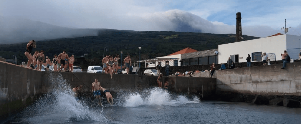 Novidades editor’s note: this tradition happens all over the archipelago as Azoreans take the traditional New Year’s plunge into the waters of the North Atlantic. From various news reports, swimmers said the sea seemed warmer than in prior years.