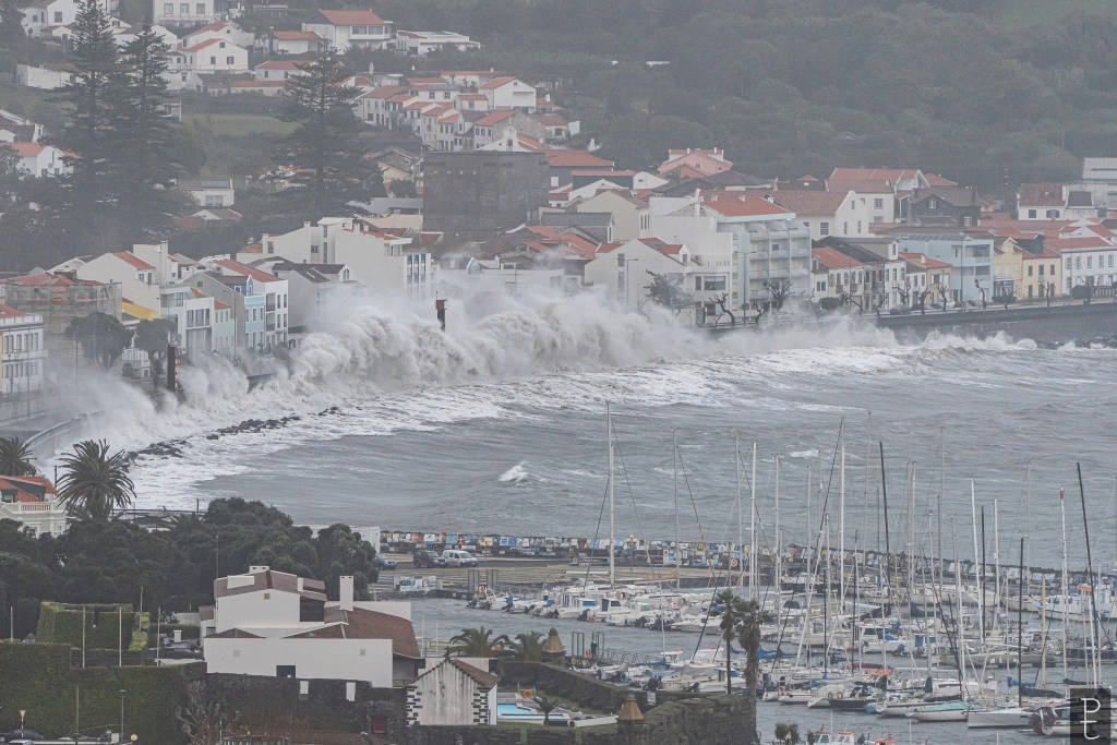 Below are some pictures of the waves hitting the city of Horta on the island of Faial. According to news reports, the seas have calmed down a bit, and the sea transportation from the islands of Faila and Pico has resumed.