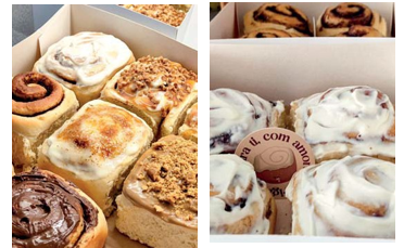 Cátia Soares (Owner of Sneaky Rolls): Currently, Sneaky Rolls has the normal size cinnamon rolls (cinnamon roll, in Portuguese), the minis, and the sneaky cake, which is a giant cinnamon roll that can be eaten in slices. As for the flavors, we have the traditional: cream cheese frosting, caramel, crunchy peanuts, cappuccino and cookie, ‘Nutella’ and crème brûlée.