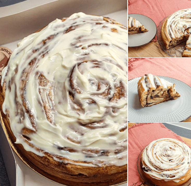 The cinnamon roll is a kind of sweet “bread”, similar to brioche dough, which contains a filling of brown sugar, butter and cinnamon, which makes the cinnamon roll moist and gives it a caramelized taste. The dough on its own is already super fluffy, but adding the cream (traditionally, cream cheese frosting) makes the cake even more decadent and soft.