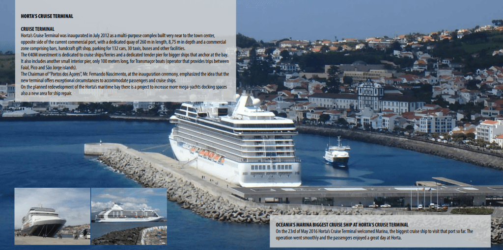 VISTA, the latest ship to be built for Oceania Cruises, another of today’s most prestigious cruise lines, is also making its maiden voyage to the city of Horta as part of the NCL group.