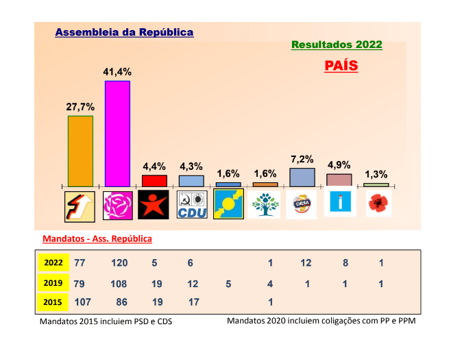 Looking at the graphs of the 2022 results, you can see that the PS won the elections, both nationally and in the region, and it was possible to build a stable national government, although with a lot of turbulence in various sectors.