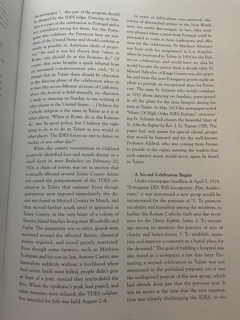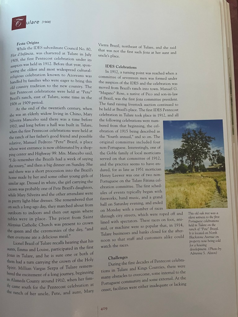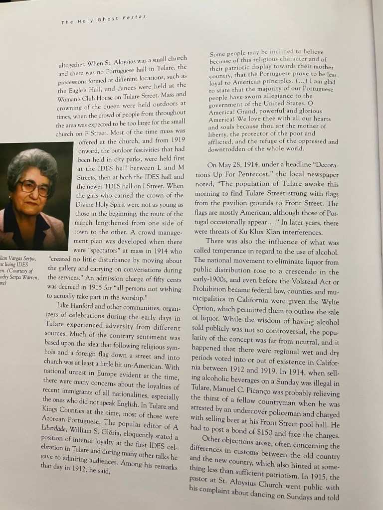 Happy Festa! Thanks to Tony Goulart’s book on the Festas, coordinated over twenty years ago, and the program from the TDES social media page, here is a bit of the history of the festa in Tulare and the complete program for this entire week. First photo from Bernadette Lawrence