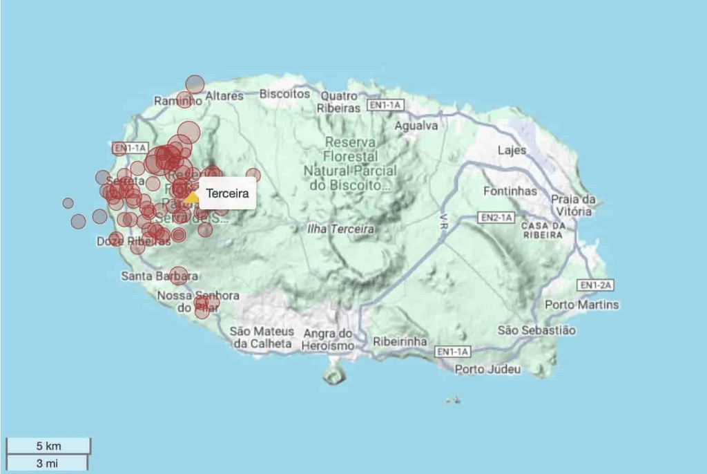 The seismic crisis at the Santa Bárbara volcano does not differ substantially from other crises. The only differentiating aspect is that, to date, there have been three earthquakes with a magnitude greater than 4.0 (4.1, 4.3, and 4.5 local magnitudes). Otherwise, the pattern of seismicity is similar to other volcanic systems in the Azores. The seismicity is primarily superficial. In 2019-2020 I had a temporary seismic network on Terceira Island and even then the seismicity was shallow. During that period, we detected some volcanic earthquakes.