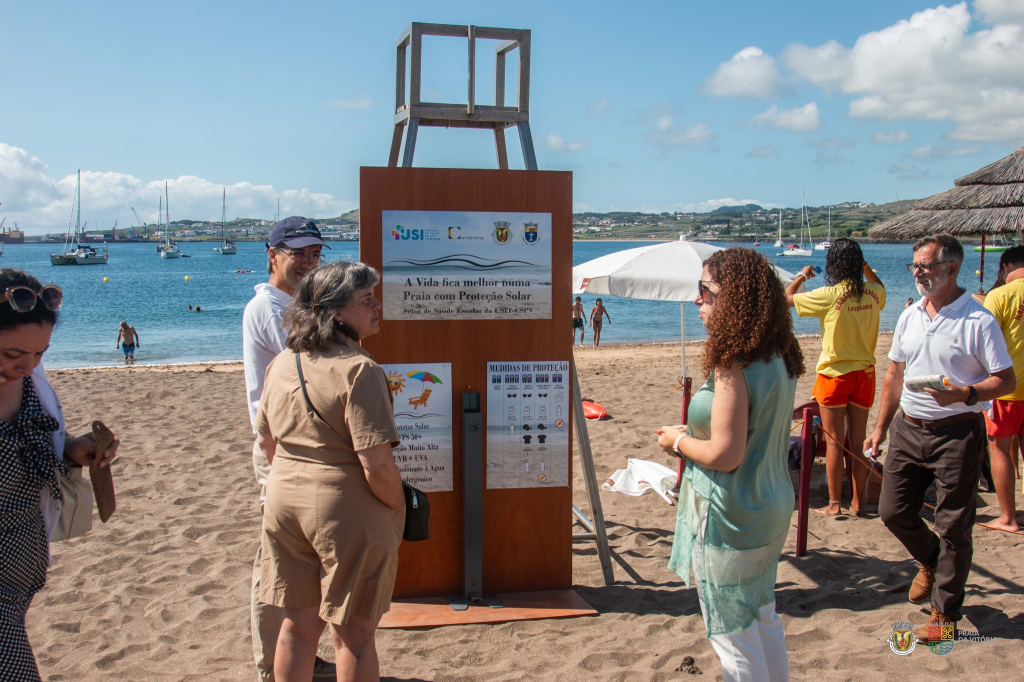 On the morning of Thursday 8th, Praínha hosted an awareness-raising event on the precautions and preventative measures for sun exposure, focusing on the importance of using sunscreen, particularly at this time of year. This activity, which the City Council joined, is part of the “Os Bravos” project, run by the School Health Sector of the Terceira Island Health Unit – Praia da Vitória Health Center. Information panels and sunscreen are available in all the Blue Flag bathing areas in the municipality.
