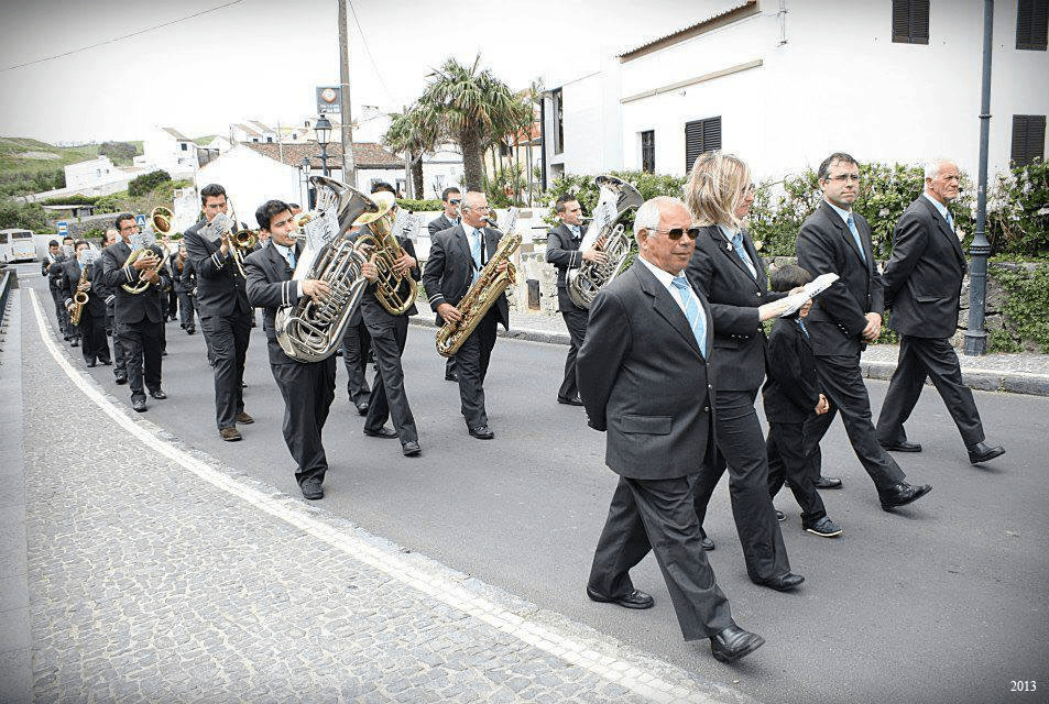 In terms of festivals, this philharmonic participates in processions and coronations of the Divine Holy Spirit, both inside and outside the parish; in the grand festivities of Senhor Santo Cristo dos Milagres, in the Marches of São João da Vila Franca; of Santo António, in Santa Cruz; in festivals; in inaugurations of the parish council, the town hall and the regional government.