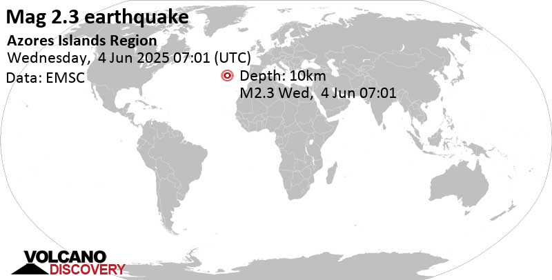 According to CIVISA, the tremors were recorded at 2:45 p.m. local time (one hour later in Lisbon), 3:06 p.m., 3:09 p.m., 3:41 p.m., and 5:39 p.m. The first earthquake had a magnitude of 3.1, followed by 2.9, 2.7, 3.3, and 2.9.