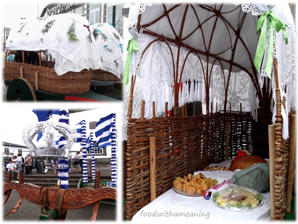 The alfenim delivered to the Empires of the Holy Spirit is then auctioned off, and the money goes towards the festivities, where, in addition to entertainment and religious ceremonies, bread, meat, and wine are distributed.