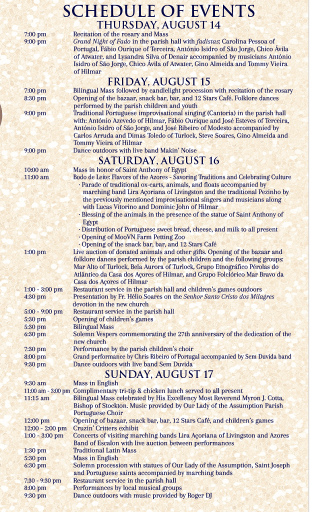 The annual Festa of Our Lady of the Assumption in Turlock, California, held at Our Lady of the Assumption Parish, stands as one of the most iconic and spiritually resonant celebrations for the Azorean-American community in the state. More than a religious observance, it is a cultural cornerstone—a gathering that unites generations of Azorean immigrants and their descendants in faith, memory, and tradition.