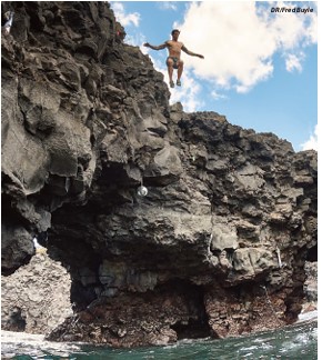 Psychoblock climbing is a type of climbing that takes place on slopes by the sea, without any safety equipment. The idea is that, in case of a fall, the climber is supported by the water. This sport requires not only technique and strength, but also confidence and comfort in aquatic environments, as it involves falling from considerable heights directly into the sea. The name “psycho-block” reflects the additional psychological challenge. In addition to the climbing itself, the climber faces the tension and risk associated with the absence of ropes and the possibility of falling into the water, making the experience more intense and demanding mentally.
