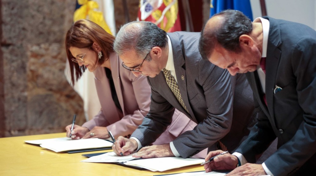 The document was signed by José Manuel Bolieiro, the Rector of the University of the Azores, Susana Mira Leal, and the President of FLAD, Nuno Morais Sarmento.