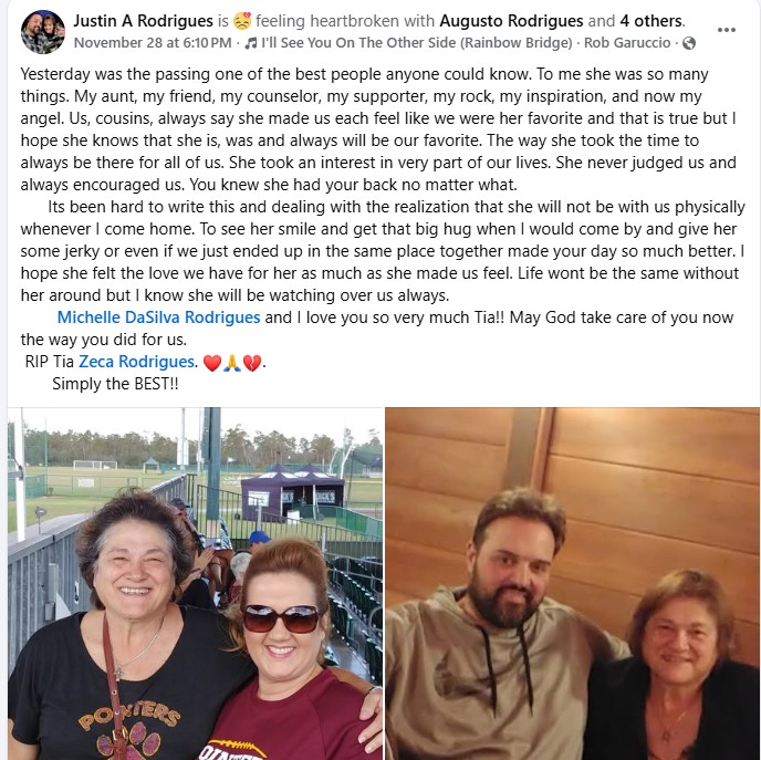 We invite members of the Portuguese-American community, near and far, to join us in honoring the life of Zeca Rodrigues. If you have memories, reflections, photographs, or short messages that speak to her impact — whether personal, spiritual, or communal — we welcome your contributions. Your words will help us preserve the mosaic of voices that shaped her journey and ensure that her legacy continues to be shared with future generations.