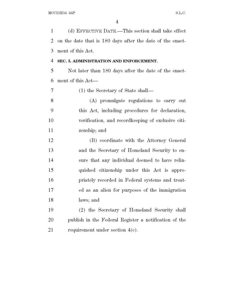 Section 4 takes effect 180 days after enactment. Exclusive-Citizenship-Act-of-20…