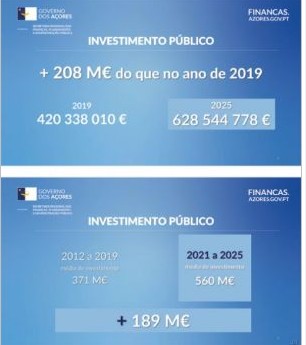 “It should be remembered that those who accuse us of increasing debt at a rate of €1 million per day are responsible for 360 days of that growth. Let’s explain once and for all: 145.3 million in commercial debts from Health, as of December 31, 2020, were assumed and paid by the coalition governments, with the option of transforming commercial debt into financial debt; €19.2 million assumed from Sinaga; €173.8 million assumed from SATA; €7.8 million from Santa Catarina; €14.5 million from Lotaçor,” he listed. “If we add these figures (€360.6 million) to the gross debt (Maastricht optics) from 2012 to 2020, we see an effective average annual growth of €202.4 million, compared to an effective average growth of €157.1 million per year from 2021 to 2024. In other words, the Azores economy is growing at four times the rate, while debt is growing at a rate 25% lower than under previous governments,” he said.