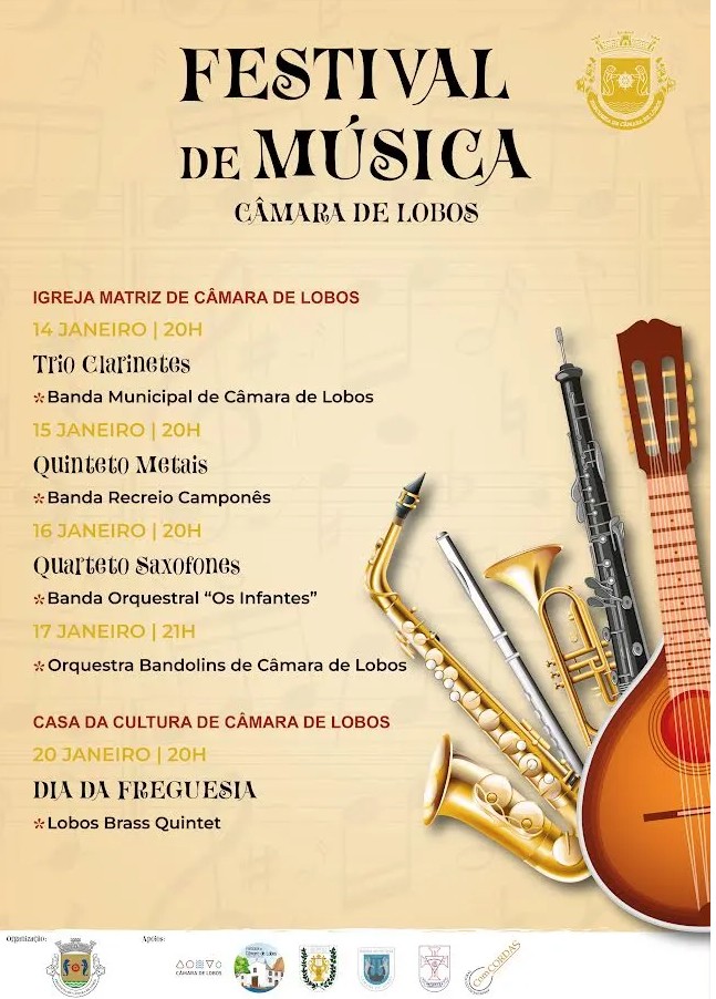 The Câmara de Lobos Parish Council is promoting a Music Festival with concerts on the 14th, 15th, 16th, 17th, and 20th, featuring groups based in the parish.
