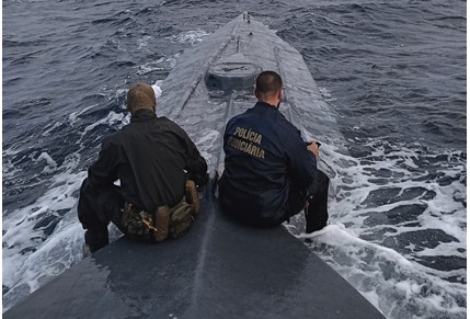 Portugal’s Criminal Investigation Police (Polícia Judiciária – PJ), through its National Anti-Narcotics Unit, carried out in recent days a major operation against transcontinental maritime drug trafficking, in coordination with the Navy and the Air Force. The operation resulted in the location and interception, on the high seas, of a semi-submersible vessel used to transport several tons of cocaine.