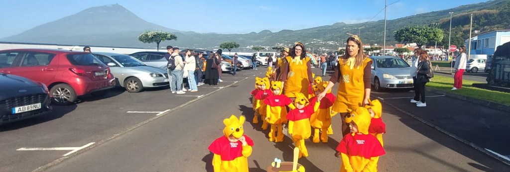 On Friday the 13th, the revelry continued with the grand Carnaval parade of the Basic and Secondary School of Lajes do Pico, joined by students, teachers, and staff from the Ponta da Ilha School. The procession moved through the village’s main streets, filling the town with color, music, and contagious joy.
