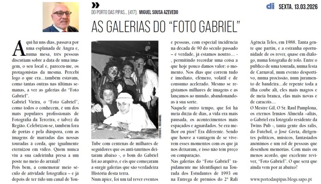 A few days ago, as I passed a café terrace in Angra do Heroísmo, I overheard three people leaning over a phone, debating the date of a photograph, the place where it had been taken, and—if I understood correctly—the identities of the people in it. I immediately knew what they were looking at. Like so many others in recent weeks, they were scrolling through the galleries of “Foto Gabriel.”