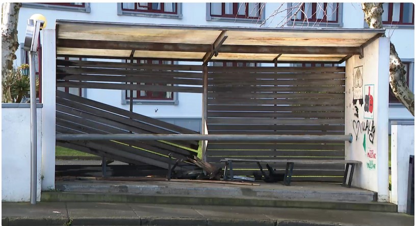 The accident occurred shortly after 11 a.m., in front of the school, when the impact between the vehicles led to two women—who were near a bus stop—being struck.